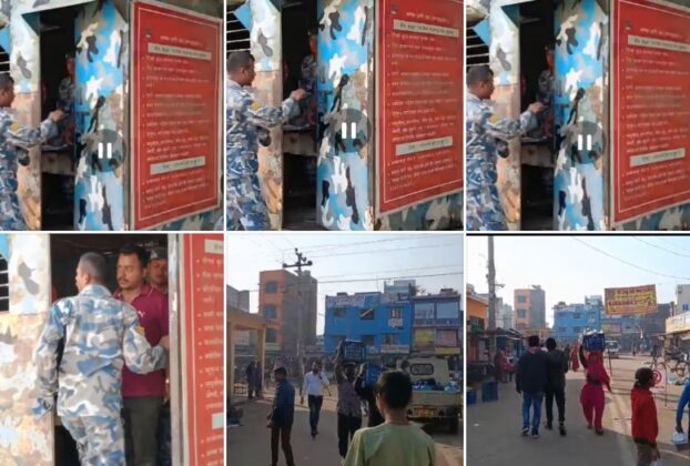 नेपाल भारत सीमा के कृष्णनगर भंसार पर पैसा वसुलने मे ब्यस्त सशस्त्र पुलिसकर्मी।